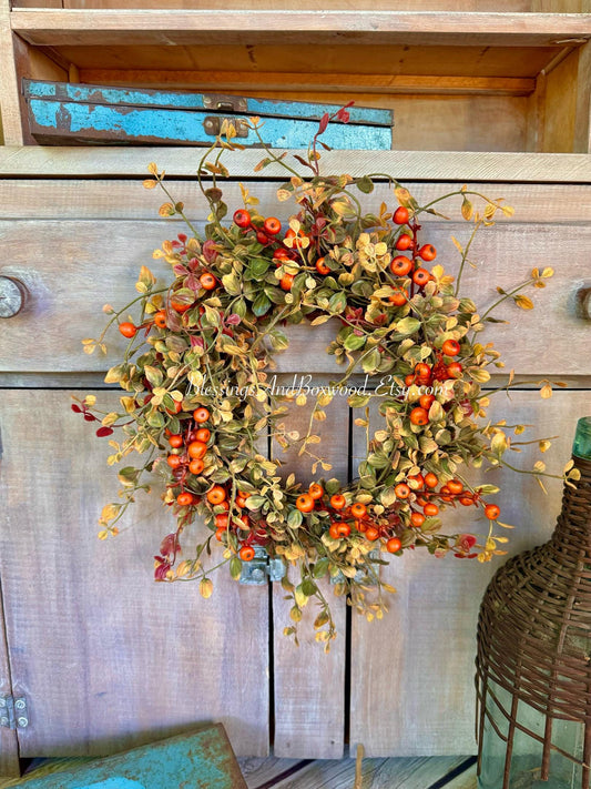 Fall Berry Accent Wreath Ring, Fall Kitchen Cabinet Wreath, Fall Bog Wreath, Thanksgiving Table Accent, Harvest Decor