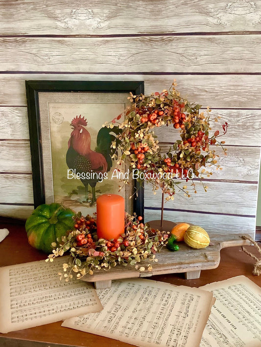 Fall Pumpkin Berry Wreath, Farmhouse Accent, Harvest Decor, Fall Candle Ring, Thanksgiving Table