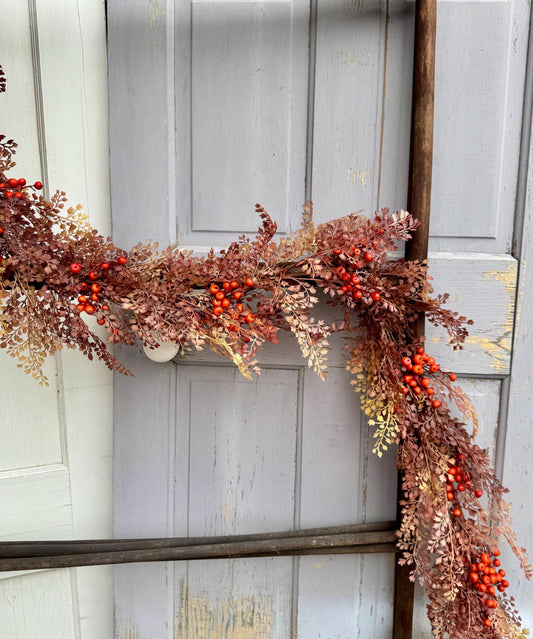 NEW 2025! Boho Fall Garland, Fall Tan Garland for Mantle, Boho Harvest Decor, Fireplace Decor, Fall Leaves and Berries Garland
